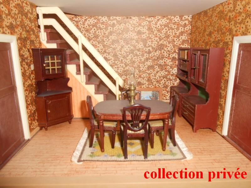 Entrée constituée de la table + 4 chaises du set "Royal" , un petit cabinet d'angle et 2 bibliothèques Lundby